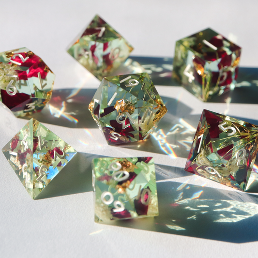 Fey Illuminations - hand-painted & handmade sharp edge 7 piece dice set