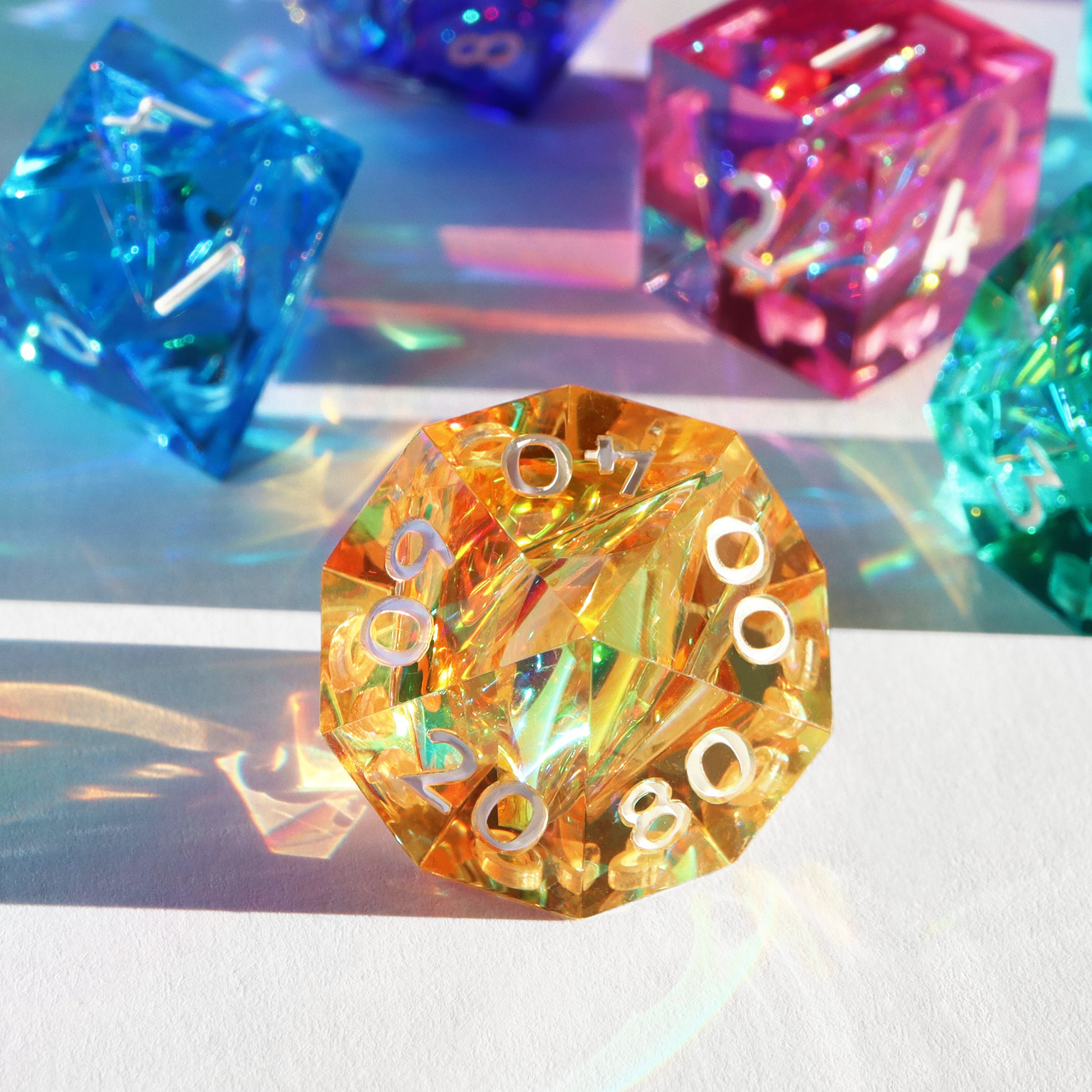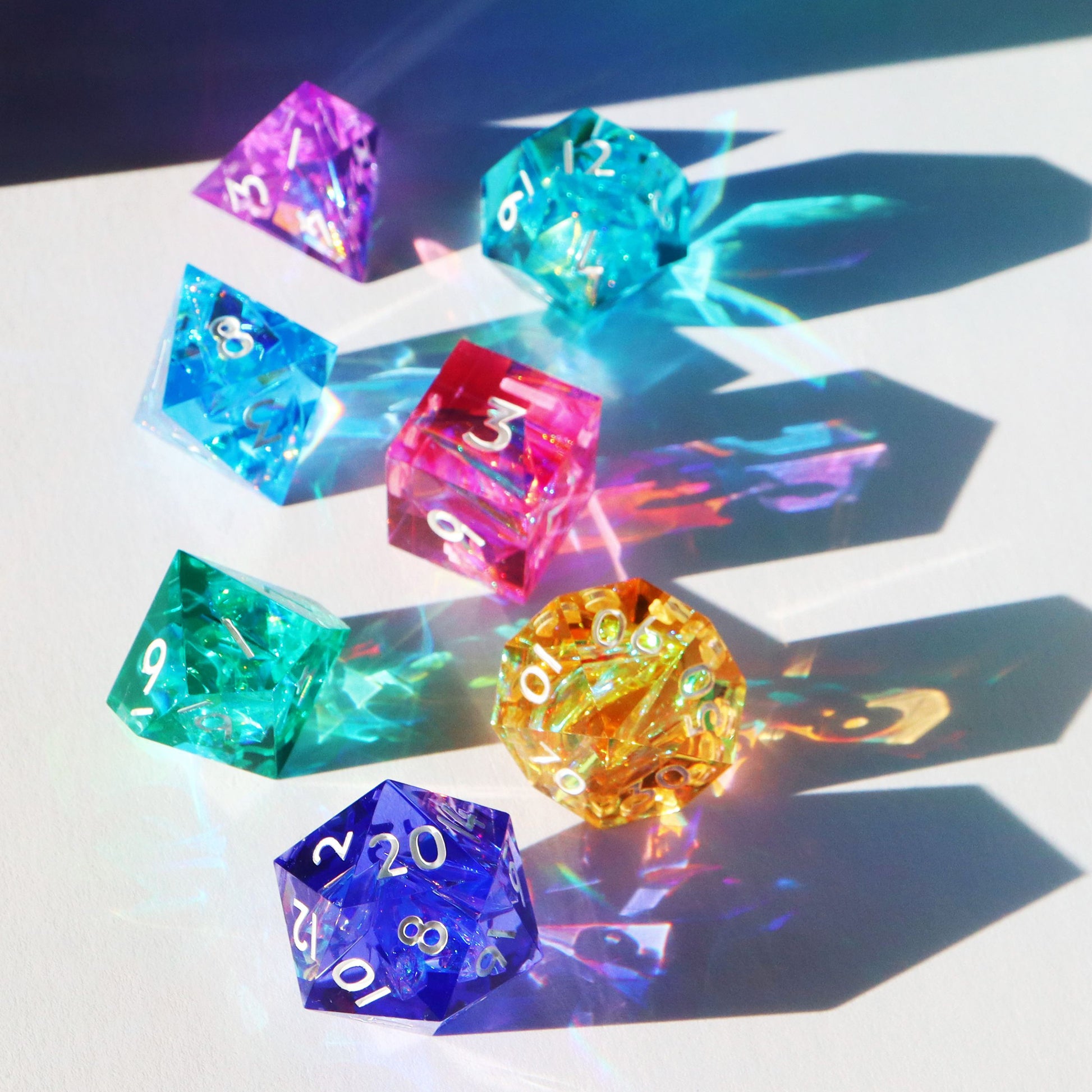 All sets sold by Everything Dice are handmade by our team of skilled resin artists, and quality-inspected to be visually perfect and suitable for casual play. Because of the handmade nature of our dice, each set will vary slightly in inclusion placement and gradient ratios.