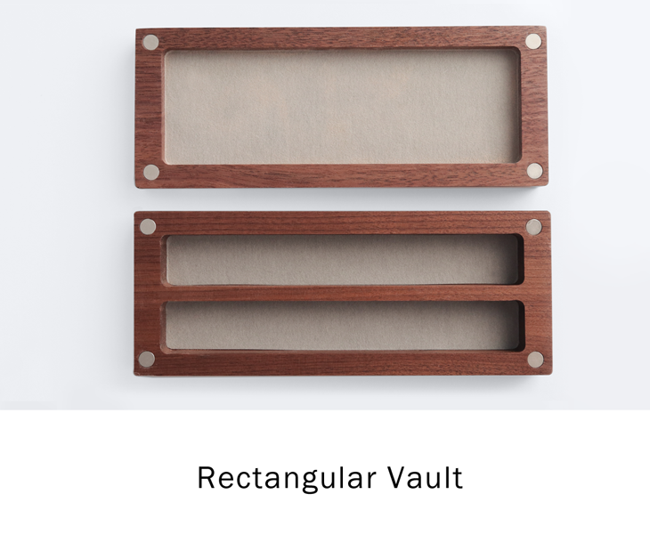 Each vault is individually hand-painted by one of our in-studio artists, and protected with a clear layer of resin. Our vaults are made with black walnut wood, with felt-lined interiors and magnetic closures. The lid can be used as a rolling tray.